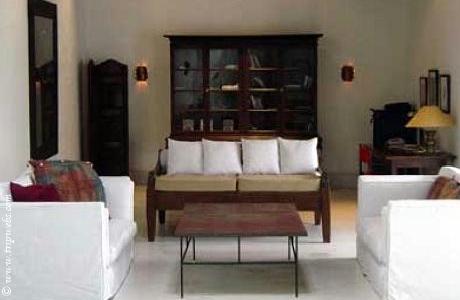 A large sitting and dining room looks onto the landscaped garden and emerald green pool through squared arches typical of the Dutch period. The sitting room is furnished with comfortable sofas and leather chairs and there is beautiful dining table at the opposite end in the dining area. There is a modern kitchen finished with white cement flooring and green terrazzo counter tops. Whilst the house is given on a self-catering basis, a cook can be arranged at an extra cost. The houseboy, who sleeps in, will prepare breakfast, help with other meals, as well as do the shopping if you wish. A room-girl comes in daily to clean.