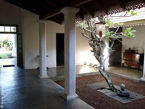 De Zoyza Villa is a private home with an airy, colonial feel and the ocean just a few minutes walk away. This six-roomed villa, with its white exteriors, trellis windows, hardwood beams, courtyards and verandahs and interiors furnished with original colonial period antiques, can comfortably accommodate up to 12 guests. |